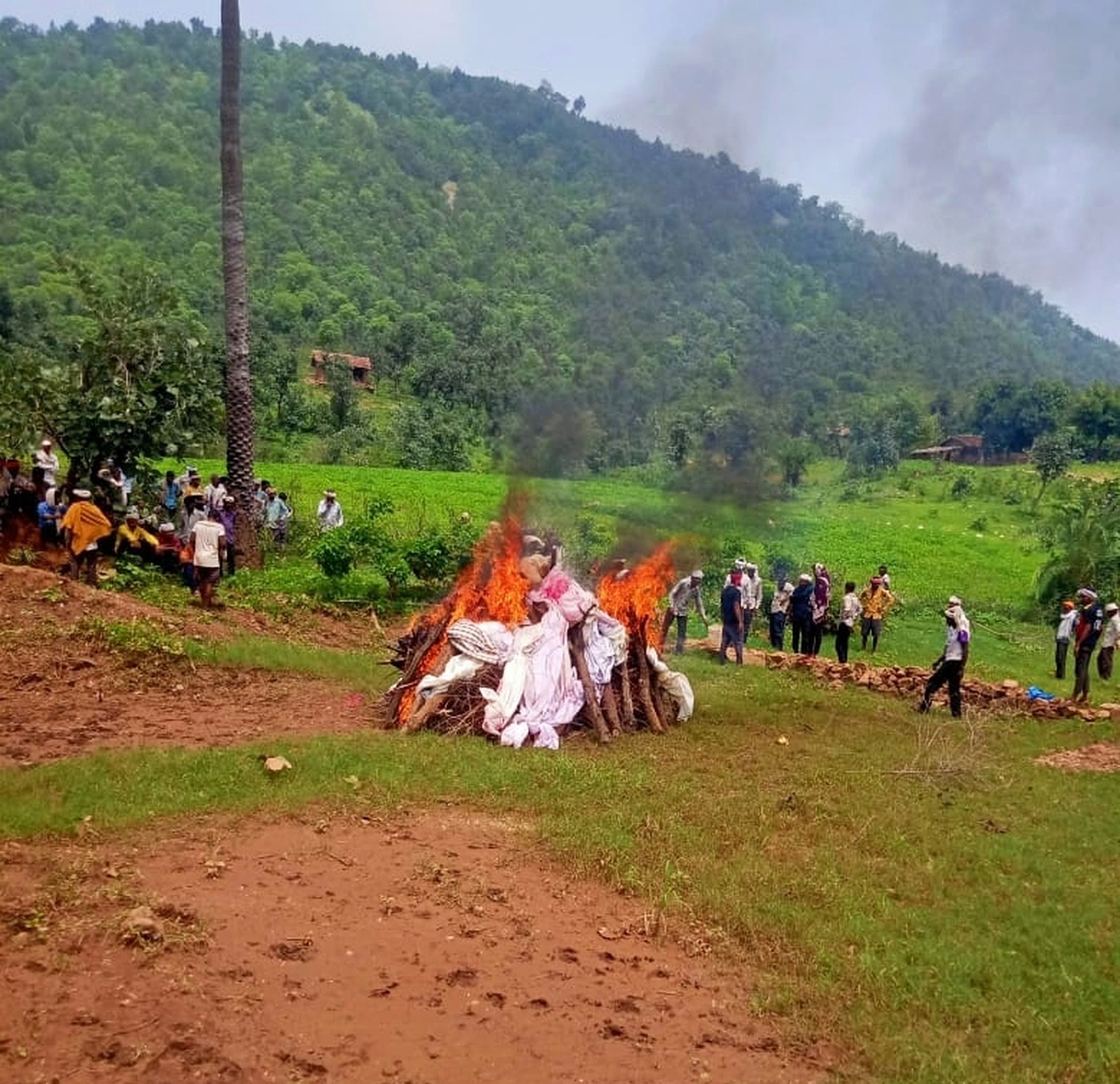 भैषाणा में खुले में दाह संस्कार करते हुए