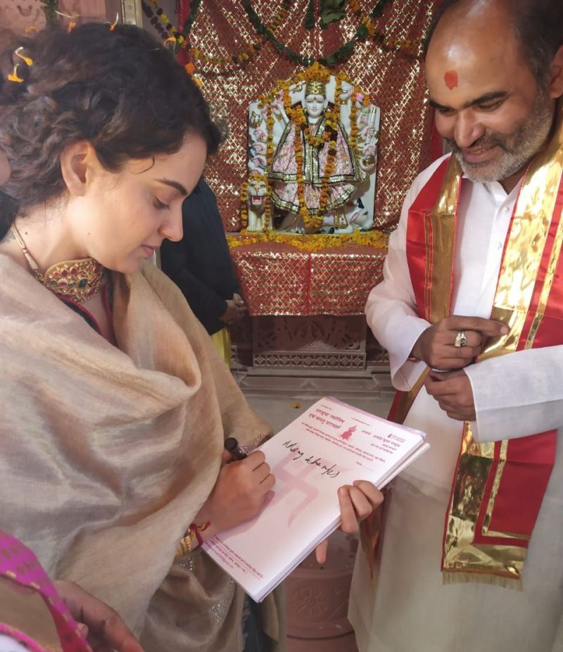 मधुलिका सिंंह/धीरेंद्र जोशी. उदयपुर . अभिनेत्री कंगना रणौत शहर से करीब 40 किलोमीटर दूर जगत कस्बे की मां अंबिका को अपनी कुलदेवी मानती हैं। वे गत नवरात्र में यहां से ज्योत लेकर हिमाचल गई। उन्होंने मंडी के पास अपने पैतृक गांव धबोई में मंदिर बनवाकर प्राण प्रतिष्ठा करवाई। इसमें उदयपुर के आचार्य अल्केश पण्ड्या के नेतृत्व में 11 पंडितों की टीम ने गत दिनों शास्त्रोक्त विधि से मंदिर में कुलदेवी की मूर्ति की प्राण प्रतिष्ठा करवाई।