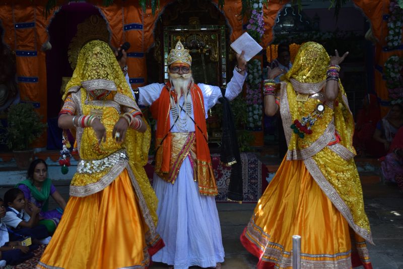 प्रमोद सोनी/ उदयपुर. श्रीकृष्ण जन्मोत्सव के दूसरे दिन कृष्ण मंदिरों में बधाइयों के गीत गूंजे। शहर के अस्थल आश्रम मेंं नन्दोत्सव धूमधाम से मनाया गया। अस्थल आश्रम में सुबह से भक्तों ने जहां बधाई गीत गाये वहींं ढाढ़ा-ढाढ़ीन कलाकारों ने नृत्य कर नंदबाबा व यशोदा को प्रभु के जन्म पर नृत्य कर बधाई गीत गाये। सोमवार मध्यरात्रि को कृष्ण जन्मोत्सव के बाद मंगलवार को सुबह काान्हा के दर्शन के साथ ही बधाई गीत गाये। अस्थल आश्रम में प्रभु के विग्रह स्वरूप को पलने में झुलाया गया। इस दौरान आश्रम के सभा मंडप में ढाड़ा-ढाड़ीन का नृत्य हुआ। इस दौरान श्रद्धालुओ ने बधाई के गीत गाये। सुबह अस्थल आश्रम में हाथी घोड़ा पालकी जय कन्हैया लाल की, नंद घर आनंद भयो जय हो नंदलाल की, कृष्ण कन्हैयालाल की जय सहित विभिन्न जयकारे गूंजे। वही बाईजी राज कुंड पर दोपहर १ बजे कुंड के सभा मंडल में ढाढ़ा-ढाढ़ीन का नृत्य हुआ व भक्तों ने बधाई गीत गाये।इस दौरान भक्तों पर दूूध दही का छििड़काव हुआ। ठाकुरजी को पालने में झूलाया गया। हाथी घोड़ा पालकी जय कन्हैया लाल की, नंद घर आनंद भयो जय हो नंदलाल की के जयकारों के साथ फल-फूल लुटाए गए।