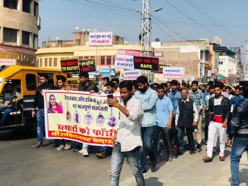 इधर, एनएसयूआई की ओर से कैंडल मार्च किया गया। डॉ. प्रियंका रेड्डी को श्रद्धांजलि दी गई। प्रदेश सचिव शाहिद हुसैन ने बताया कि इस मौके पर पूर्व जिला उपाध्यक्ष विजय सिंह कच्छावा, सचिव गुलाम अहमद, कृष्णा कुशल प्रताप सिंह, पप्पू यादव, अभिषेक बच्चन, सौरव मौजूद थे।