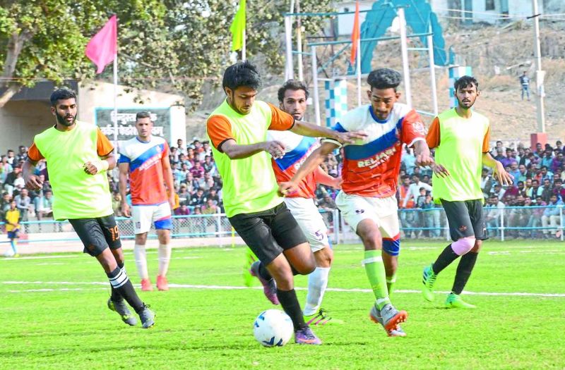 सत्यनारायण सेन/ जावरमांइस . अखिल भारतीय मोहनकुमार मंगलम फुटबॉल प्रतियोगिता का आगाज रविवार शाम जावरमाइंस के जावर स्टेडियम में हुआ। रंगारंग प्रस्तुतियों के साथ शुरू हुए फुटबॉल महाकुंभ में उद्घाटन मैच ट्रायम्फ फुटबॉल क्लब हिमाचलप्रदेश और शमा फुटबॉल क्लब महाराष्ट्र के बीच खेला गया, जिसमें महाराष्ट्र की टीम ने पेनल्टी शूट में 5-4 से जीत हासिल की। प्रतियोगता की शुरुआत में डीएवी स्कूल के बच्चों ने रंगारंग प्रस्तुतियां दी। स्टेडियम के बीच में फु टबॉल की बड़ी प्रतिकात्मक कृति रखी गई। मुख्य अतिथि अन्तरराष्ट्रीय फुटबॉलर शकील अली, विशिष्ठ अतिथि पूर्व सांसद रघुवीरङ्क्षसह मीणा, जावर इकाई के साईट प्रेसीडेन्ट राजेश कुण्डू, मजदूर संघ महामंत्री लालूराम मीणा, सराड़ा पूर्व प्रधान रेशमा मीणा थे, जिन्होंने खिलाडिय़ों से परिचय किया। बिग फुटबॉल में से निकले गोल्डन मेन ने अतिथियों को फुटबाल थमाई। मुख्य अतिथि ने फु टबॉल को किक मारकर मैच की शुरुआत की। मैच देखने के लिए हजारों दर्शक जावर स्टेडियम पहुंचे।