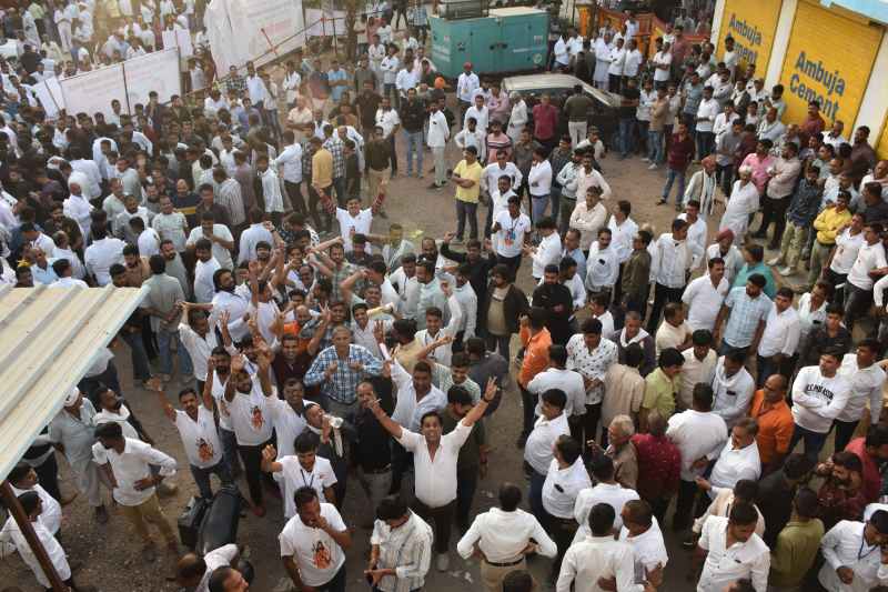 आसावरा स्थित मेनारिया समाज की धर्मशाला के बाहर जुटे समाजजन