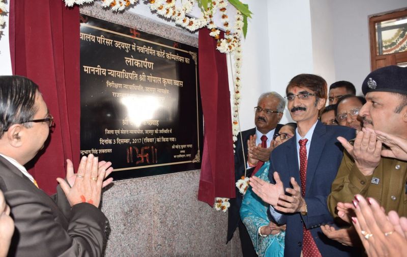 उदयपुर . अदालत परिसर में नवनिर्मित न्यू कोर्ट कॉम्पलेक्स का रविवार सुबह हाईकोर्ट के न्यायाधीश गोपालकृष्ण व्यास ने जिला एवं सत्र न्यायाधीश देवेंद्र कच्छावा, जिला कलक्टर विष्णुचरण मल्लिक एवं जिला पुलिस अधीक्षक राजेंद्र प्रसाद गोयल की उपस्थिति में विधिविधान से पूजा-अर्चना कर लोकार्पण किया।