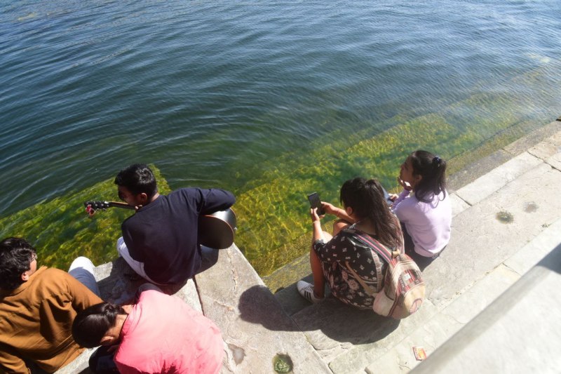 उदयपुर के अमराई घाट पर बैठे युवा।