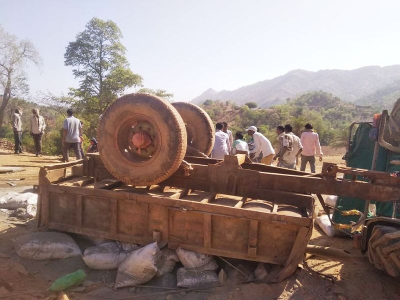 उदयपुर. झाड़ोल. पुलिस थाना क्षेत्र के किरट के नजदीक नेशनल हाईवें पर बुधवार सुबह टे्रक्टर पलटने से ट्रोली में बैठे हुए दो दर्जन मजदूर घायल हो गए। जानकारी अनुसार बुधवार सुबह ढाला से नेशनल हाईवें पर काम करने के लिए ढाला से करीब दो दर्जन मजदूर टे्रक्टर में सवार होकर नेशनल हाईवें पर मजदूरी के लिए आ रहे थे, कि किरट के नजदीक ट्रेक्टर अनियन्त्रित होकर पलट गया। ग्रामीणों एंव जेसीबी के सहयोग से घायलों को बाहर निकाल कर झाडोल सामुदायिक स्वास्थ्य केन्द्र लाया गया और वहां से प्राथमिक उपचार के बाद उदयपुर रेफर किया गया। टे्रक्टर टॉली में सीमेन्ट के बेग एंव चदरें भी भरी हुई थी। दुर्घटना में गंभीर रूप से घायल होमी बाई पत्नी बाबूलाल, कागली बाई पत्नी सरदारा, सोमराज पुत्र खेता, सविता पत्नी मांगीलाल, सरदारमल पुत्र रोशन, पप्पु पुत्र भूर्ता, नरेश पुत्र देवीलाल एवं मंागीलाल पुत्र हकरा को उदयपुर रेफर किया गया जहां उपचार के दौरान मांगीलाल ने दम तोड़ दिया।