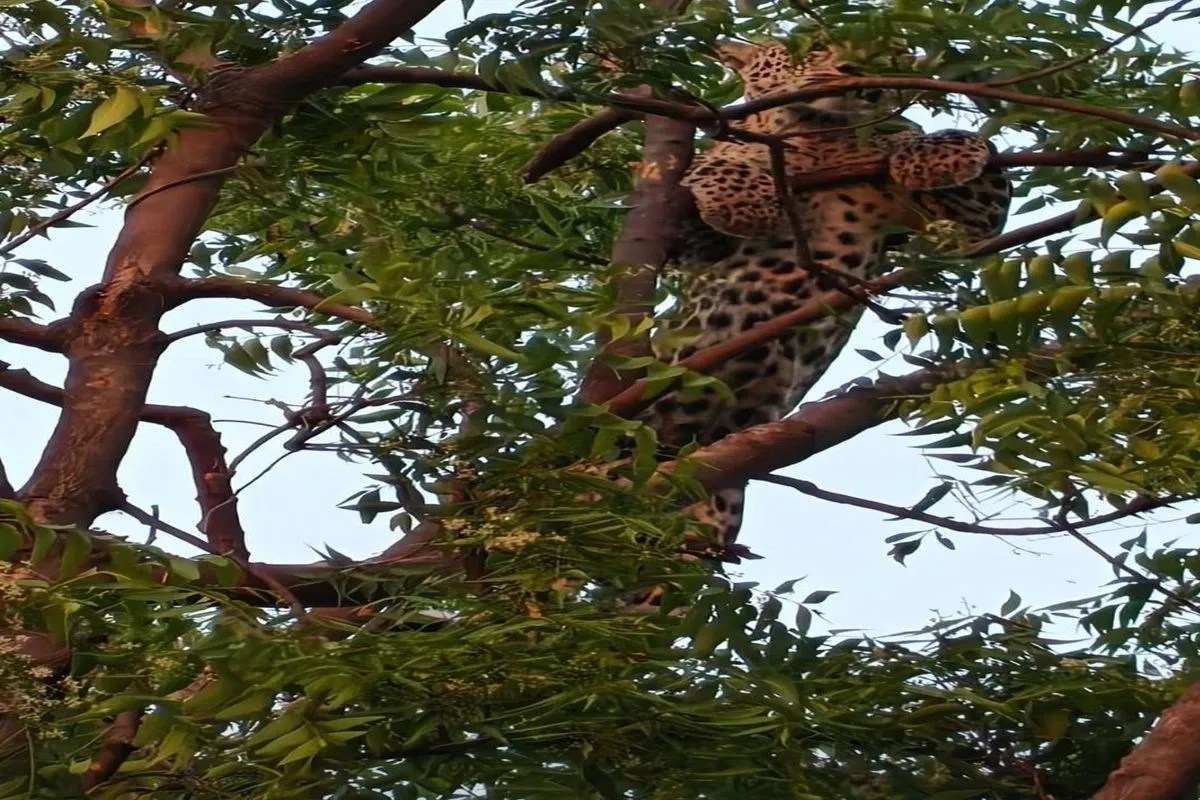 दोनों किसानों ने हिम्मत नहीं हारी और पैंथर का डटकर मुकाबला किया। ग्रामीणों के मौके पर जुटने और शोर मचाने के कारण पैंथर वहां से भागा और पास ही स्थित एक ऊंचे नीम के पेड़ पर चढ़ गया। पैंथर को देखने बड़ी संख्या में ग्रामीण एकत्र हो गए। करीब 30 से 40 फीट ऊंचे नीम के पेड़ पर पैंंथर इधर-उधर कूदता रहा।