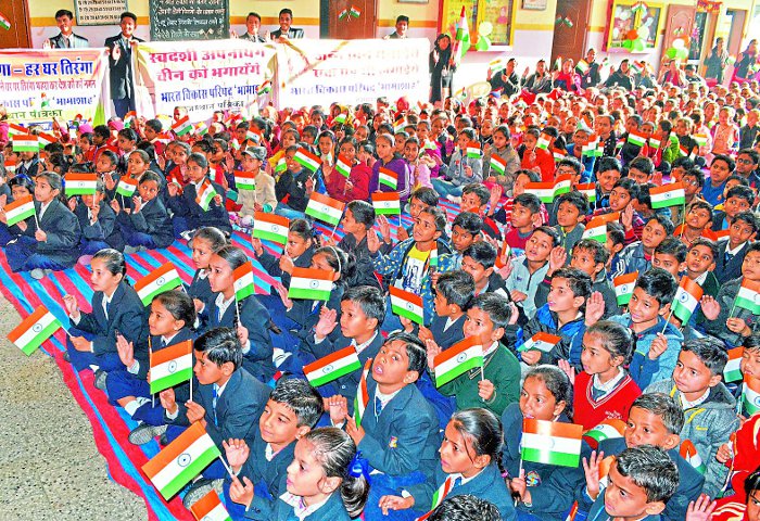 हम सभी का यह पुनीत कर्तव्य है कि 26 जनवरी को अपने घर, गली, मोहल्ले, शिक्षण संस्थान और व्यापारिक प्रतिष्ठानों पर तिरंगा जरूर फहराएं। इस अवसर पर स्कूल निदेशक शर्मिला जैन, प्रधानाचार्य डॉ. लोकेश जैन, परिषद् के रीजनल सैक्रेटरी डॉ. एमजी वाष्र्णेय, यशवन्त सोमानी, एलएल नाहर, मदनलाल सियाल, सुलोचना अग्रवाल, चित्रा मेनारिया ने विद्यार्थियों को नि:शुल्क तिरंगे वितरित किए। साथ ही यथासम्भव स्वदेशी वस्तुएं अपनाने, स्वच्छता रखने तथा जन्मदिन पर एक पौधा लगाने की शपथ भी दिलाई गई।