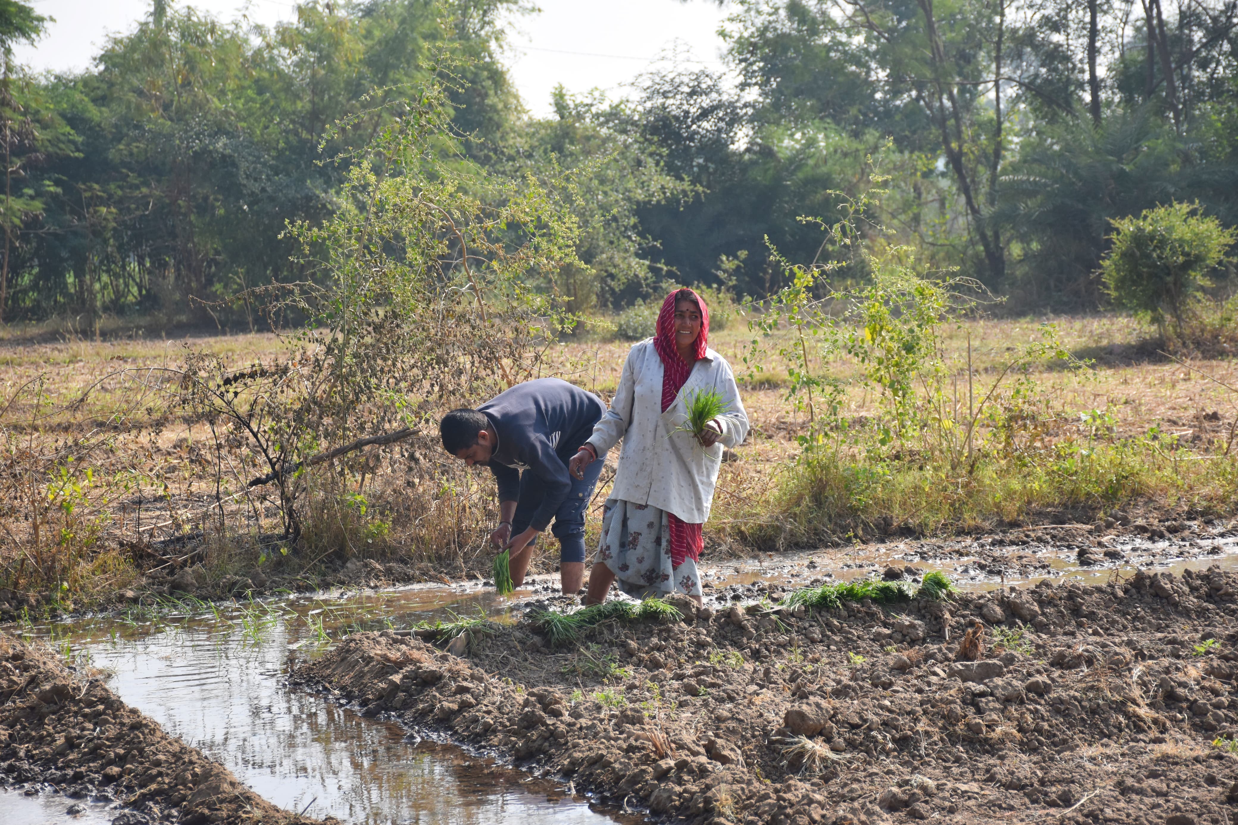मेनार स्थित खेतों में अंतिम दौर में बुवाई करते किसान