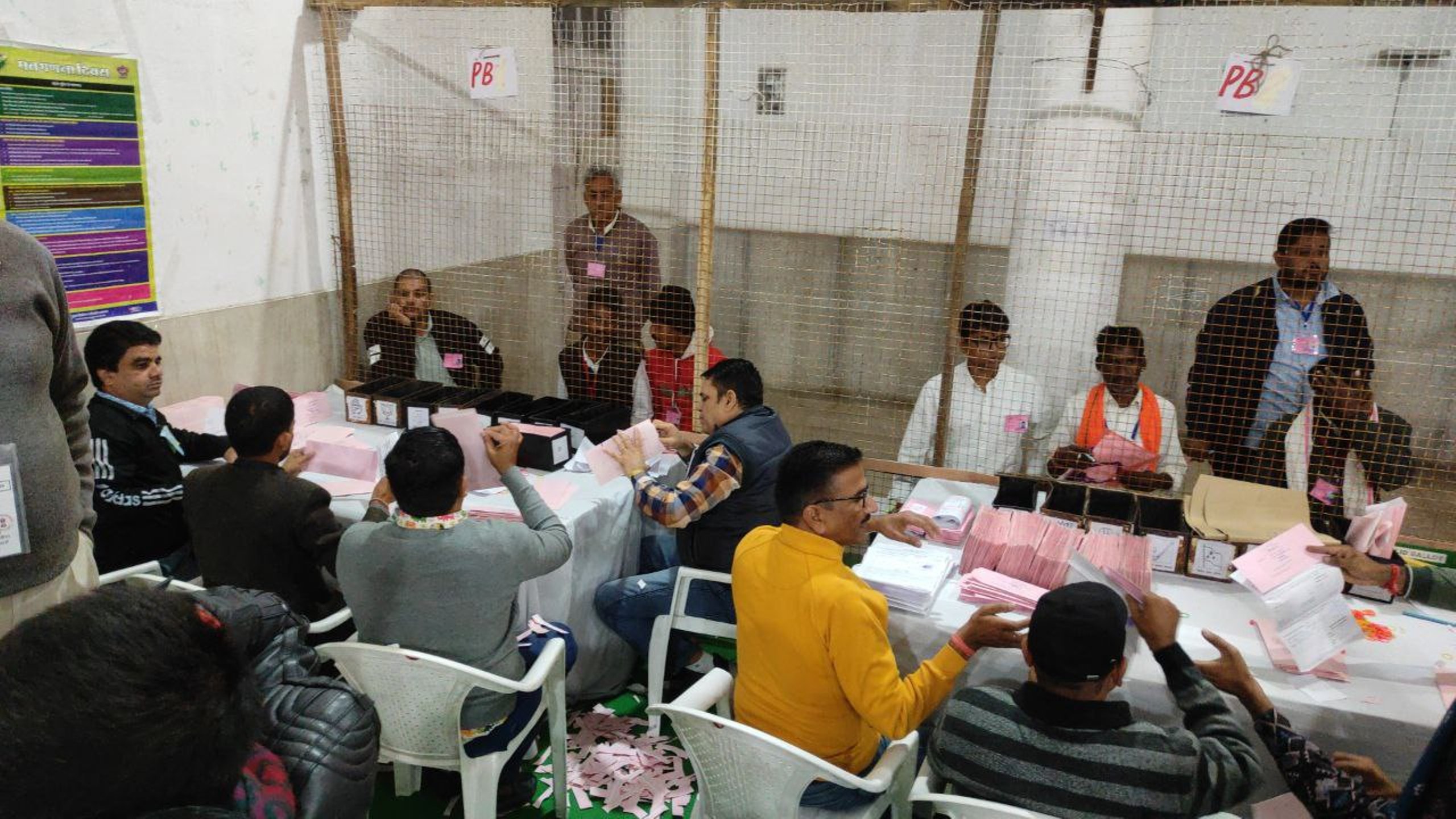 मतगणना स्थल पर मतगणना करते कार्मिक