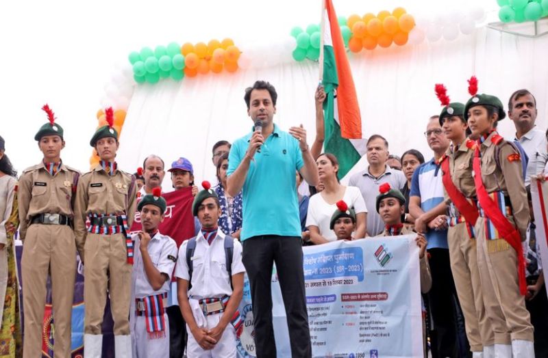टाया पैलेस के समीप आयोजित मंचीय कार्यक्रम में जिला निर्वाचन अधिकारी एवं कलक्टर अरविन्द पोसवाल ने हाथ में तिरंगा थाम कर बच्चों, युवाओं का उत्साह बढ़ाया। इस दौरान उन्होंने आगामी 1 अक्टूबर तक 18 वर्ष की आयु पूर्ण कर रहे युवाओं से वोटर हैल्प लाइन एप के जरिए मतदाता पंजीयन कराने की अपील की। उन्होंने कहा कि लोकतंत्र में वोट सबसे बड़ी ताकत है। एक-एक वोट देश का भविष्य तय करता है। इसलिए समस्त देशवासियों को अपने वोट के प्रति जागरूक कर उसका इस्तेमाल करना चाहिए। अतिरिक्त जिला कलक्टर सिटी तथा उदयपुर विधानसभा क्षेत्र के आरओ राजीव द्विवेदी ने भी मतदान के प्रति जागरूक रहने का आह्वान किया। कार्यक्रम में अंतर्राष्ट्रीय टेनिस बॉल क्रिकेटर और स्वीप उदयपुर के जिला आइकॉन कुलदीपसिंह राव ने भी युवाओं से मुखातिब होते हुए अपना और परिवार के सभी बालिग सदस्यों का मतदाता सूची में नाम सुनिश्चित करने और मतदान दिवस पर बूथ पर जाकर मतदान अवश्य करने का संदेश दिया। मुख्य आयोजना अधिकारी तथा स्वीप प्रकोष्ठ के सहायक नोडल अधिकारी पुनीत शर्मा एवं स्वीप कार्यक्रम संयोजक देवीलाल गर्ग ने जिले में चल रही मतदाता जागरूकता गतिविधियों की जानकारी दी। कार्यक्रम के दौरान वॉकाथन और साइकिल रैली के विजेताओं को पुरस्कृत किया गया। इस अवसर पर टीआरआई निदेशक तरू सुराणा, डीओआईटी संयुक्त निदेशक डॉ मजहर हुसैन, सामाजिक न्याय एवं अधिकारिता विभाग के उपनिदेशक मान्धातासिंह, अनुष्का एकेडमी के डॉ राजीव सुराणा आदि उपस्थित रहे।