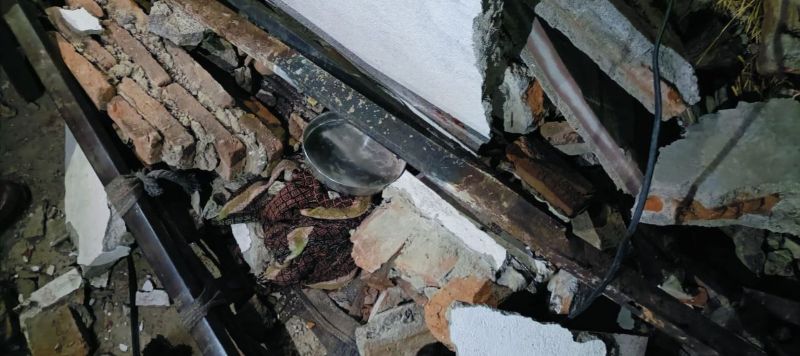 मौके पर गिरा हुआ छज्जा का मलबा