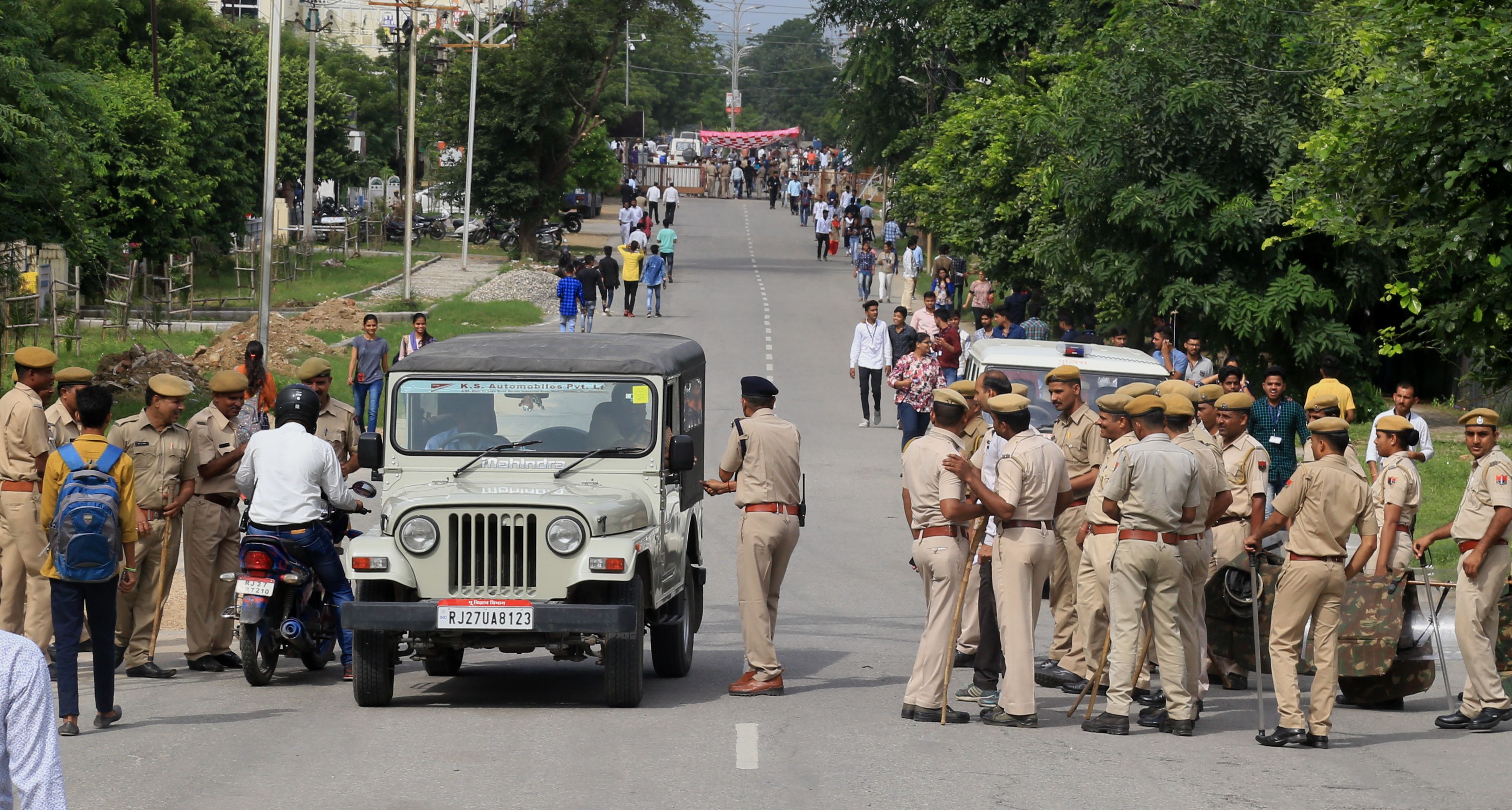 पहरा ऐसा कि पुलिस अंदर, छात्र बाहर