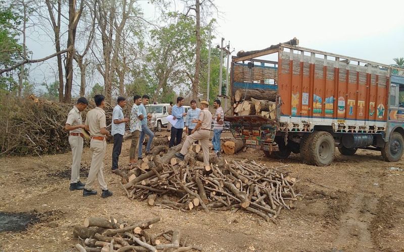 कानोड़. (उदयपुर). हरे वृक्षों पर कुल्हाड़ी चलने की लगातार शिकायतें मिलने के बाद तहसील प्रशासन ने बड़ी कार्रवाई करते हुए कस्बे के निकट केसरपुरा बोलियों का साथ खातेदारी जमीन पर अंधाधुंध पेड़ों की कटाई कर रहे लोगों पर कार्रवाई की है । तहसीलदार रंजीत यादव व पुलिस ने मौके पर जाकर खातेदारी जमीन से पेड़ों को काटकर ट्रक में लादते लोगों पर कार्रवाई कर एक नाबालिग को डिटेन किया है, वही लकड़ी से लदे ट्रक को भी जब्त किया है । तहसील प्रशासन ने लकड़ी से लदे ट्रक को जप्त कर पुलिस को सौंप दिया है ट्रक को पुलिस थाना कानोड़ में रखवाया गया है । इस मौके पर तहसील प्रशासन के साथ पुलिस प्रशासन मौजूद रहा ।