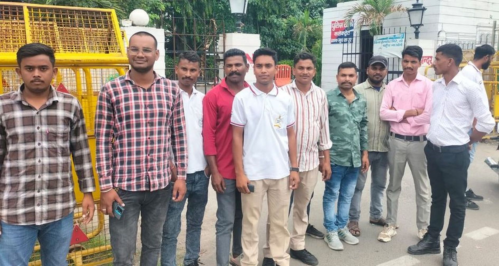 वेतन संबंधी परेशानी पर पुलिस अधीक्षक को ज्ञापन देने पहुंचे एफआरवी संचालक।