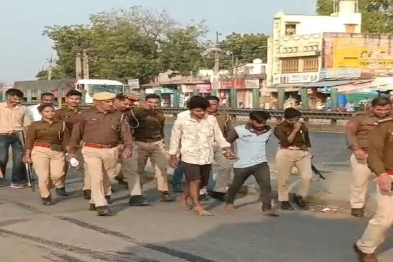 पुलिस की ओर से आरोपियों का निकाला गया जुलूस।