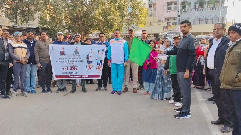 रन फॉर विकसित राजस्थान रैली को रवाना करते हुए