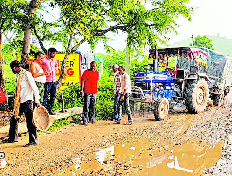 गड्ढे में ट्रैक्टर फंसने से 2 घंटे लगा जाम