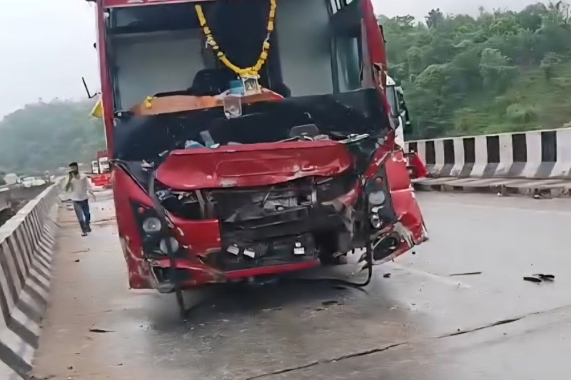 Damaged bus after the accident. Photo: Patrika