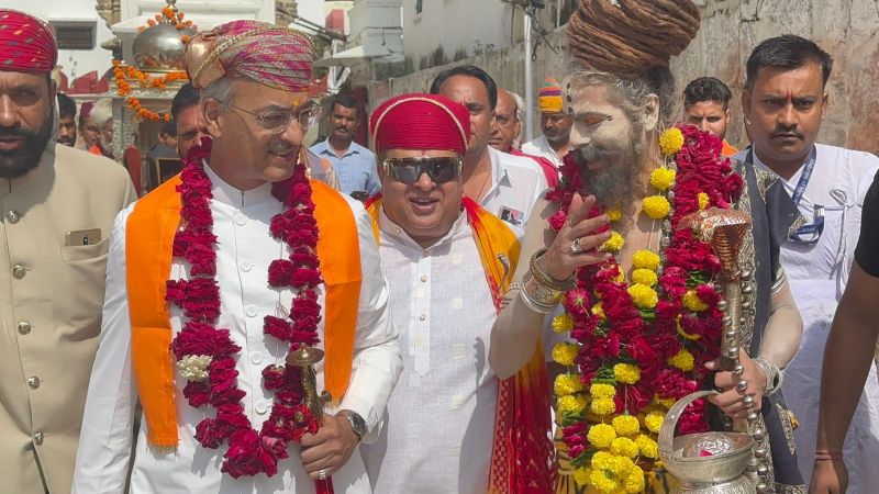 जानकारी के अनुसार सुबह 9 बजे जगदीश मंदिर में संत ने दर्शन किए। उनकी अगवानी मुख्य अतिथि मेवाड पूर्व राजपरिवार के विश्वराज सिंह मेवाड़ थे। विशिष्ट अतिथि आलोक संस्थान के निदेशक डॉ. प्रदीप कुमावत थे। दोनों अतिथियों ने संत की अगवानी की। सुबह 9.30 बजे शोभायात्रा शुरू हुई। इसमें दिगंबर संत खुशाल भारती, अमेरिका से आए मायाभारती, ऋषि भारती के साथ जितेंद्र भारती, कमलगिरी, राहुल गिरी, अनुप गिरी आदि संत मौजूद रहे। शाेभायात्रा में 101 कलश लिए महिलाएं चल रही थी। इसके साथ ही विभिन्न समाज-संगठनों की झांकियां शामिल थी। इनमें श्रीनाथजी, शिव तांडव और अखाडा प्रदर्शन ने लोगों को आकर्षित किया। मार्ग में जगह-जगह संत का पुष्पवर्षा से स्वागत किया गया। इसके साथ ही विभिन्न खाद्य और पेय पदार्थों की स्टाल भी लगाई गई। शोभायात्रा दोपहर 2.30 बजे बड़बडेश्वर महादेव मंदिर पहुंची। वहां संतों का सनातन परंपरा के अनुसार विशेष स्वागत किया गया। रात को भजन संध्या हुई। इसमें देर रात तक महेंद्र राठौड, सुरेश गहलोत, कमेलश राव ने भजनों की प्रस्तुतियां दी।