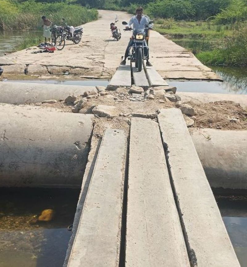 दुर्घटना की भी आशंकापुलिया पर ग्रामीणों द्वारा बनाए गए जुगाड़ पर दुपहिया वाहन निकालने तथा पैदल या कोई सामान सिर पर वजन उठाकर ले जाते समय नजर हटने से दुर्घटना का अंदेशा रहता है। ग्रामीणों को विद्युत पोल के माध्यम से पुलिया पार करनी पड़ती है।