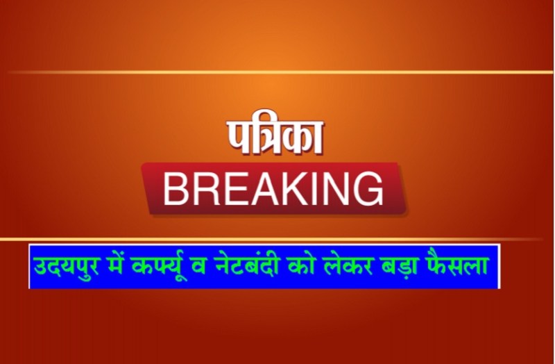 दूसरी तरफ संभागीय आयुक्त राजेन्द्र भट्ट ने उदयपुर में सोमवार दोपहर 12 बजे तक इंटरनेट निलंबित करने के आदेश जारी किए है, वहीं राजसमंद जिले के भीम व देवगढ़ कस्बे में अगले 24 घंटों तक नेटबंदी रहेगी। उल्लेखनीय है कि 28 जून को रात्रि 8 बजे से शहर में कर्फ्यू जारी है और उसके साथ ही नेटबंदी लगा रखी थी।