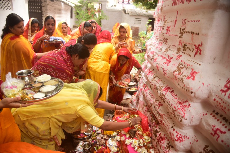 लोक परम्पराओं के अनुसार होली के बाद मेवाड़ में सप्तमी और अष्ठमी पर शीतला माता की पूजा की जाती है। सप्तमी पर पूजा करने वाली महिलाओं ने छठ की शाम को भोजन तैयार किया। इसमें चावल, केर सांगरी की सब्जी, आलू, भिंडी, बैंगन की सब्जी, पूड़ी, अमचूर आदि तैयार किए गए। मंगलवार सुबह चावल का खट्टा और मीठा ओलिया तैयार किया गया। इसके साथ ही शीतला माता की पूजा की गई। पूजा के दौरान आटे में हल्दी मिलाकर दीपक, गहने आदि तैयार किए गए। माताजी को स्नान करवाकर दीपक में बाती रखकर माताजी को बिना जलाए अर्पित की गई। वहीं गहने और अगरबत्ती भी बिना जलाए अर्पित किए गए। एक दिन पूर्व बनाए गए व्यंजन और ओलिया का माताजी को भोग लगाया गया। पूरे दिन इन्हीं व्यंजनों को खाया गया।