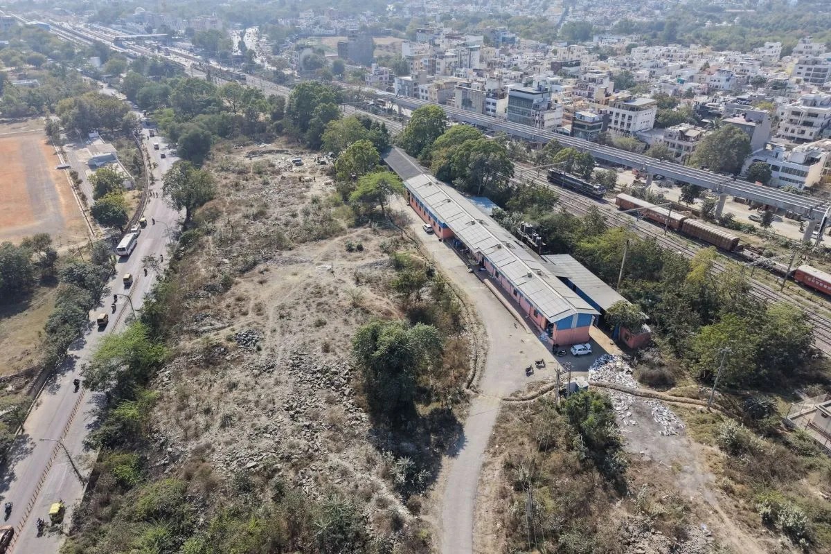रेलवे की इस जमीन को लीज पर दिया जाएगा। ड्रोन कैमरे से लिया गया दृश्य। फोटो-प्रमोद सोनी, ड्रोन सहयोग मुक्तेश सोनी