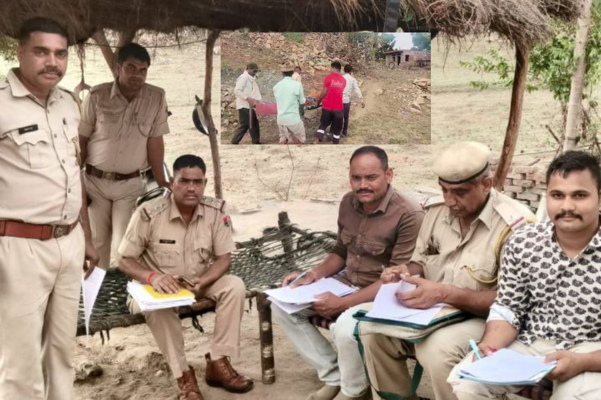 मौके पर पुलिस जांच करती पुलिस व मृतक को खाट से ले जाते हुए। Photo- Patrika