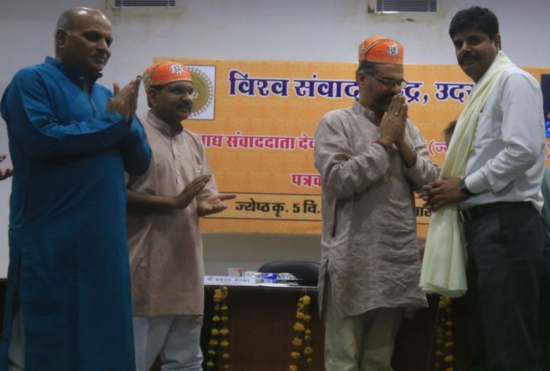 इस मौके पर पत्रकारिता के क्षेत्र में विशेष कार्य करने वाले राजस्थान पत्रिका के धीरेन्द्र कुमार जोशी सहित तीन पत्रकारों का सम्मान किया गया। विश्व संवाद केन्द्र के प्रभारी कमल रोहिल्ला ने केंद्र की गतिविधियों की जानकारी दी। सम्मानित होने वाले पत्रकारों का परिचय भारतभूषण ओझा व मनोज जोशी ने करवाया।