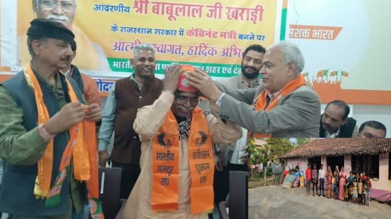 उदयपुर। अपने केलूपोश (झोपड़ी) मकान में रहने वाले झाड़ोल विधायक बाबूलाल खराड़ी (Babulal Kharadi) केबिनेट मंत्री बनने के बाद सोमवार को पहली बार उदयपुर पहुंचे। यहां एयरपोर्ट से लेकर भाजपा कार्यालय तक जगह-जगह उनका स्वागत किया गया। उन्होंने कैलाशपुरी पहुंचकर सबसे पहले भगवान एकलिंगनाथ के दर्शन किए। इस बीच उन्होंने कहा कि एक जमीन से जुड़े कार्यकर्ता का इतना बड़ा मान इस संगठन में ही संभव है। हम सत्ता की पार्टी के कार्यकर्ता हैं, अपनी कार्यशैली में हमें परिवर्तन लाना होगा। अब नारेबाजी के बजाए जनहित के कार्य करने होंगे।