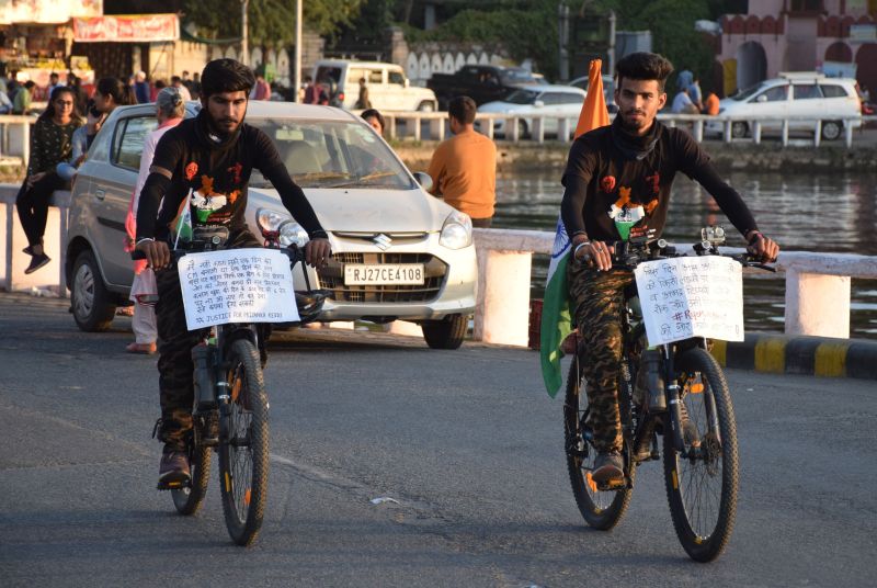 उदयपुर. महिलाओं को स्वावलम्बन बनाने व उनमें सुरक्षा की भावना जागृत करने की दृष्टि से यूथ अगेंस्ट रेप नामक संस्था के कार्यकर्ता साइकिल यात्रा कर सभी को जागरूक कर रहे हैं।