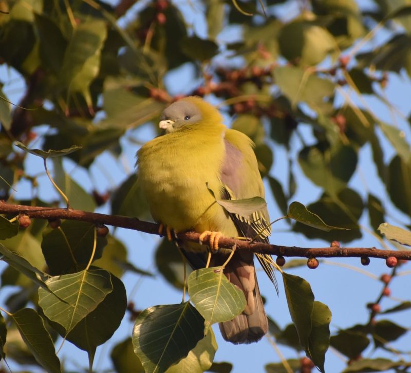 पक्षी मित्र दर्शन मेनारिया ने बताया कि महाराष्ट्र का राजकीय पक्षी हरियल को यैलो फुटेड ग्रीन पीजन के नाम से जाना जाता है। इसका शरीर चमकीला पीलापन लिए हरे और धूसर रंग का होता है। नर का रंग मादा के मुकाबले ज्यादा चमकीला होता है। समूह में रहना पसंद करता है। घने पत्तों वाले पेड़ पर आवास करता है। फल खाते समय यह कलाबाजी करता है।