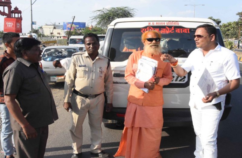 उज्जैन। तराना के तिलभांडेश्वर मंदिर के महंत व खुद को सुप्रीम कोर्ट बाबा बताने वाले महंत प्रकाशानंद भारती की स्कार्पियो से पदनाम लिखी प्लेट व ऊपर लगी अतिरिक्त लाइट आरटीओ अमले ने निकलवाई। गुरुवार को महामृत्युंजय द्वार के पास चेकिंग दौरान महंत की गाड़ी रोकी गई और प्लेट निकालने को कहा। पहले तो बाबा ने परिचय दिया और आरटीओ संतोष मालवीय को बातों में घोंटा, लेकिन आरटीओ ने कह दिया कि आचार संहिता लागू है इसका पालन सभी को करना जरूरी है। बाद में बाबा माने और प्लेट निकलवा दी व ५०० रुपए जुर्माना भरा। कार्रवाई दौरान सरपंच, भाजपा नेता, मानवाधिकार व पत्रकार संगठन सहित अन्य नियम विरुद्ध लगी ७५ नेम व नंबर प्लेट उतराकर जब्त की गई। कुल १२ हजार रुपए का जुर्माना वसूला गया। कार्रवाई दौरान कुछ लोगांे ने प्लेट वापस भी मांगी, लेकिन अमले ने कह दिया प्लेट जब्ती में आ गई है वापस नहीं मिल सकती।