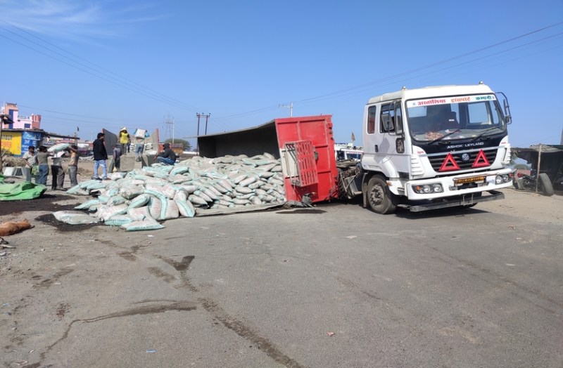 मप्र स्टेट हाइवे नंबर 17 पर सीमेंट से भरा ट्राला पलटा, जनहानि नहीं