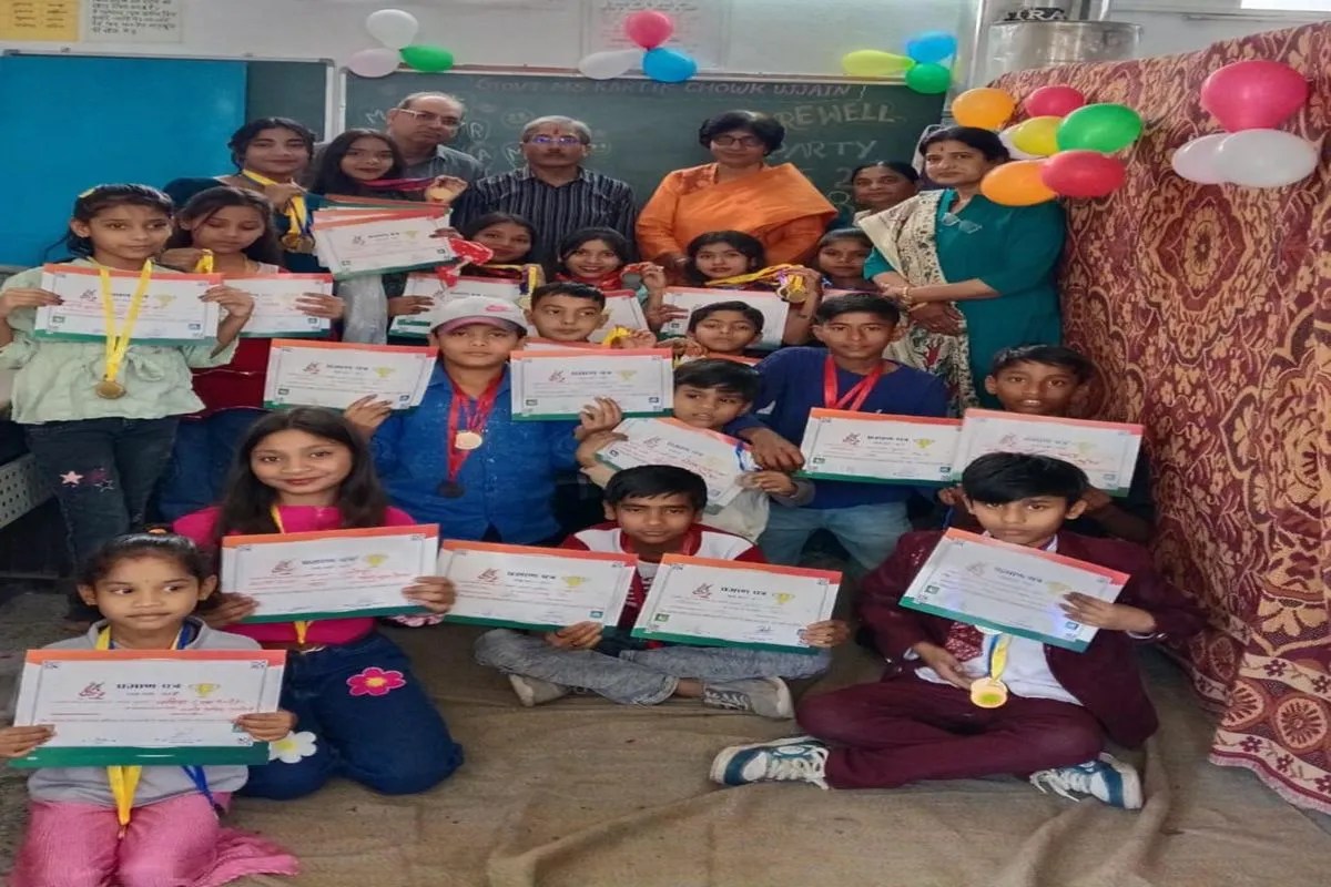 उज्जैन के शासकीय माध्यमिक विद्यालय, कार्तिक चौक में पुरस्कार वितरण एवं विदाई समारोह उत्साहपूर्वक आयोजित किया गया। कार्यक्रम में शिक्षाविद् राकेश भार्गव मुख्य अतिथि के रूप में उपस्थित रहे, जबकि व्याख्याता सुश्री उपमा शर्मा विशिष्ट अतिथि के रूप में शामिल हुईं। कार्यक्रम की अध्यक्षता प्रधानाध्यापक वासुदेव मंडलोई ने की। समारोह के दौरान विद्यार्थियों में खासा उत्साह देखा गया और विद्यालय परिसर में उत्सव जैसा माहौल बना रहा।