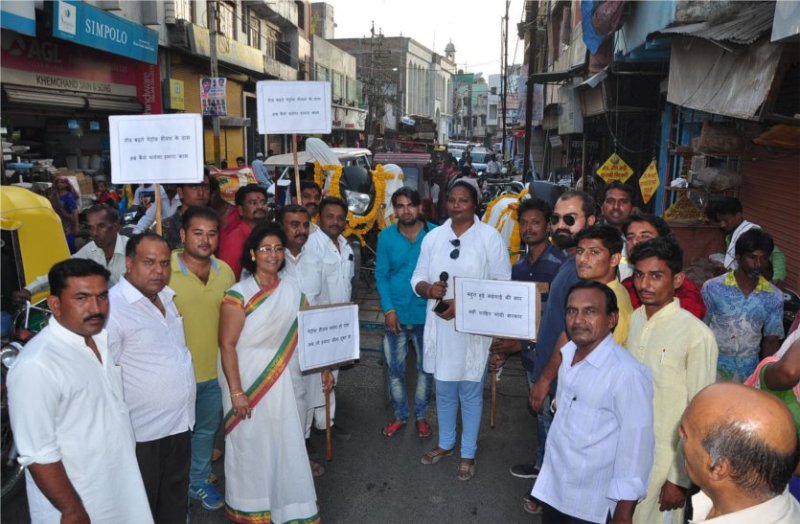 यूपीए सरकार के समय कच्चे तेल के दाम 115 डॉलर प्रति बैरल थे और पेट्रोल का भाव 60 रुपए था, अब जबकि मोदी सरकार के समय कच्चे तेल की कीमत 70 डॉलर प्रति बैरल है और फिर भी पेट्रोल की कीमत 80 रुपए से ज्यादा हो गई है। यात्रा ढाबा रोड, मिर्जा नईम बैग मार्ग होते हुए तेलीवाड़ा पहुंचकर समाप्त हुई।