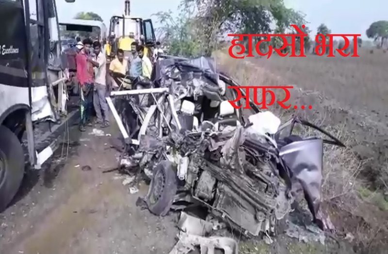 जानकारी के अनुसार तराना निवासी जलीलउद्दीन का परिवार कार से अजमेर घूमने के लिए गया था। शनिवार को वापस उज्जैन लौट रहा था। इस दौरान कायथा के पास ब्यावरा से आ रही पीताम्बरा टे्रवल्स की बस से जोरदार टक्कर हुई। आमने सामने की भिड़ंत में बस के एक हिस्से को नुकसान हुआ, लेकिन कार पूरी तरह से खत्म हो गई। कार का अगले हिस्से के टुकड़े-टुकड़े हो गए। इसमें आगे बैठे हुए लोग बुरी तरह से दब गए।