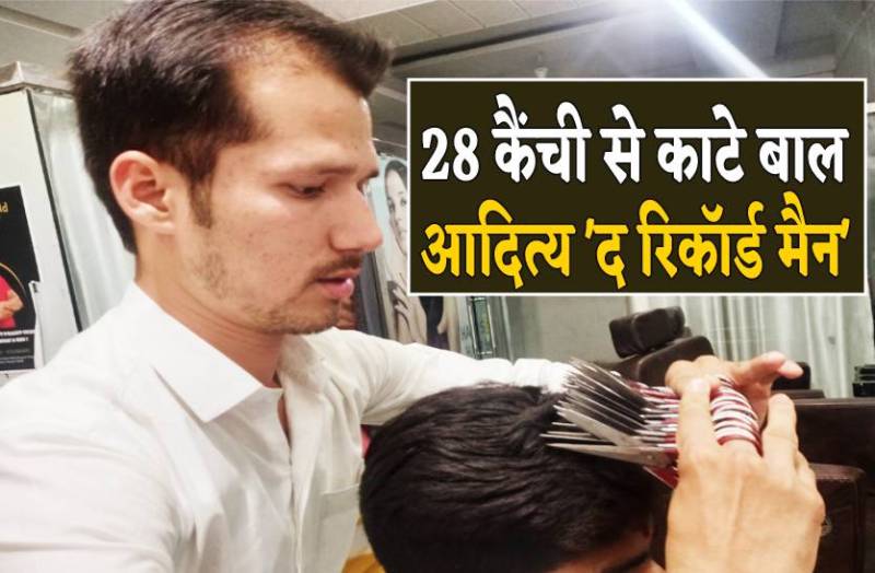 28 कैंची से हेयर कटिंग कर रिकॉर्ड बनाने वाले आदित्य देवड़ा उज्जैन के फ्री गंज इलाके में हेयर सैलून चलाते हैं। आदित्य ने बताया कि पहले ये रिकॉर्ड ईरान के एक हेयर स्टाइलिस्ट के नाम था जिसने 22 कैंचियो से एक साथ हेयर कट किया था। उन्होंने कहा कि जब उन्होंने ईरान के हेयर स्टाइलिस्ट का वीडियो देखा तो खुद भी ऐसा करने के बारे में सोचा। करीब चार साल तक प्रैक्टिस की और अब 28 कैंची से एक साथ हेयर कट कर वीडियो बनाया जिसे इंडिया बुक ऑफ रिकॉर्ड में नॉमिनेशन के लिए भेजा। सभी औपचारिकताएं पूरी करने के बाद अब इंडिया बुक ऑफ रिकॉर्ड में उनका नाम दर्ज किया गया है।