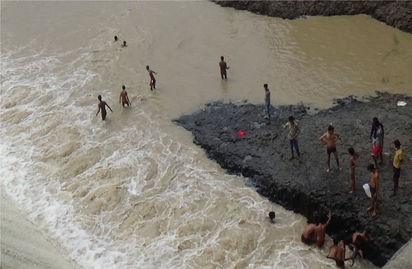 चामुंडा मंदिर के समीप स्थित कुंड पर युवाओं की टोली बैठी नजर आई। इतनी तेज रफ्तार पानी का बहाव होने के बाद भी कुंड के समीप बने टीले पर बैठकर तेज बहाव वाले पानी के नजारे को निहारते नजर आए। यदि डेम का पानी एकाएक तेजी से बढ़ा या जरा सी चूक हुई तो युवा सीधे मौत का ग्रास बन जाएंगे। ऊफान पर आई चंबल के दृश्य को देखने के दौरान कोई भी बड़ी घटना हो सकती है।