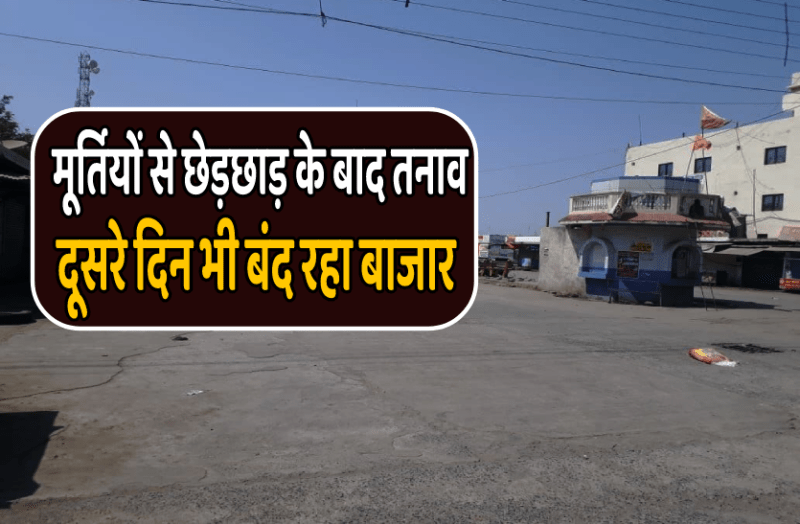 उज्जैन/ बड़नगर. उज्जैन के बड़नगर में दो प्रतिमाओं को क्षतिग्रस्त करने के मामले में भड़का हिन्दू समाजजनों का गुस्सा लगातार दूसरे दिन बुधवार को भी नहीं थमा। प्रशासन की अपील के बावजूद दोपहर तक कस्बा का ज्यादातर बाजार बंद रहा। वहीं, पुलिस ने मामले में हिन्दू समाजजनों के प्रदर्शन और विरोध के बाद अज्ञात आरोपियों की तलाश तेज करते हुए करीब एक दर्जन संदिग्धों को हिरासत में लेकर पूछताछ शुरू कर दी है। कस्बा में लगातार दूसरे दिन धारा 144 लागू होने से आवाजाही भी कम रही तो कई प्रमुख रोड पर नाकाबंदी रही।