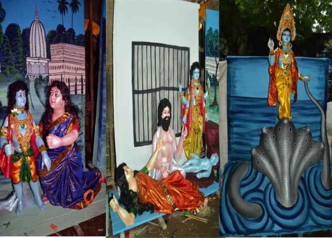 कोलकाता से आए आठ कारीगरों ने श्रील प्रभुपाद और श्रीकृष्ण के अलग-अलग प्रसंगों पर तीस झांकियां तैयार की हैं। प्रमुख कारीगर ऋषिकेश पाल ने बताया सभी झांकियां कोलकाता की मिट्टी से ही बनाई गई है। तीस प्रसंगों में इस्कॉन के संस्थापक भक्तिवेदांत स्वामी प्रभुपाद के अलग-अलग प्रसंग हैं। वहीं श्रीकृष्ण के जन्मोत्सव से लेकर रासलीला, गंगा जी का प्रसंग, माखन चोरी, गोवर्धन पर्वत, गुरु सांदीपनि और श्रीकृष्ण की शिक्षा जैसे कई प्रसंगों को पूरी तरह शृंगारित कर दर्शाया जाएगा। पाल ने बताया कि इस काम को लेकर पहली बार इस्कॉन मंदिर ने उनसे संर्पक किया। एक महीने पहले उनके साथी सुबेंदु पाल, कृष्णनेंदु पाल, निर्मल वर, हेंमत बिसाई, सुमित पाल सहित अन्य साथियों ने झांकियां तैयार की है। पाल ने बताया कि शनिवार को सभी तीस झांकियां इस्कॉन मंदिर भेज दी जाएगी। वहां भी पंडाल में इन झांकियों को सजाने का काम कारीगरों द्वारा किया जाएगा।