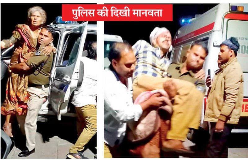 हमेशा विवादों में रहने वाली पुलिस का मानवीय चेहरा नजर आया। सरकारी अस्पताल में सबसे पहले खाचरौद 100 डायल घायलों को लेकर सरकारी अस्पताल पहुंची थी। 100 डायल के आरक्षक प्रदीप बौरासी व पायलट मुदस्सर खान को अस्पतल में स्ट्रेचर तैयार नहीं मिला तो वे घायलों को अपनी गोद में उठाकर ड्रेसिंग रूम तक चले गए।