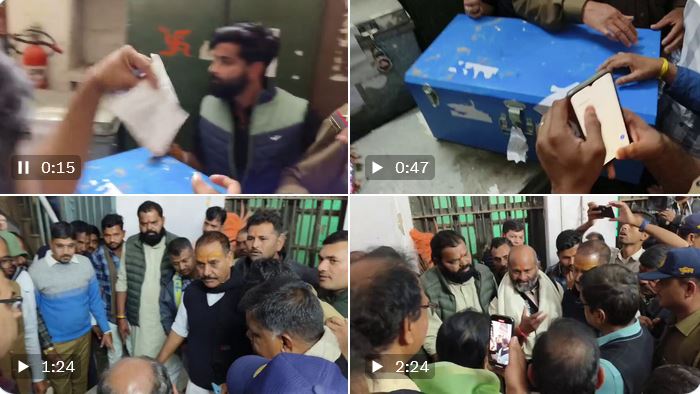 मतगणना के लिए स्ट्रॉन्ग रूम से बैलेट पेपर की पेटियों को निकालकर मतगणना स्थल के ले जाया जा रहा था। इसी दौरान कांग्रेस के नेताओं और कार्यकर्ताओं ने जब पेटियों पर लगी सील को देखा तो वो गीली थी। इसे लेकर हंगामा हो गया। मौके पर मौजूद महेश परमार ने प्रशासन को चुनौती देते हुए कहा कि कल यदि बैलेट पेपर के कारण स्थिति बिगड़ी तो माहौल खराब हो जाएगा जिसका जिम्मेदार प्रशासन रहेगा।