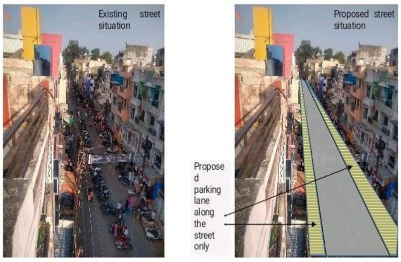 - मुख्य मार्ग के केंद्रीय भाग को छोड़कर दुकानों के सामने व्यवस्थित पार्किंग बनाई जाएगी।