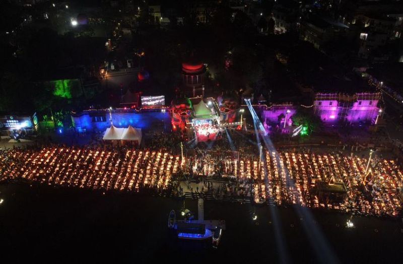 जवाब- दीपक का वल्र्ड रेकॉर्ड बनाने के तीन तरह की प्रक्रिया है। पहले सूखे दीपक की गिनती। इसके बाद दीपक जलने पर यहां तैनात कर्मचारियों की विटनेस रिपोर्ट और ड्रोन से वीडियोग्राफी से गिनती। इन तीनों के आंकड़े आने पर स्पेशल साफ्टवेयर से विश्लेषण करते हैं। एवरेज निकालने के बाद जले हुए दीपों का अंतिम आंकड़े जारी करते हैं। इस कार्य में ३५० कर्मचारियों की टीम लगी।