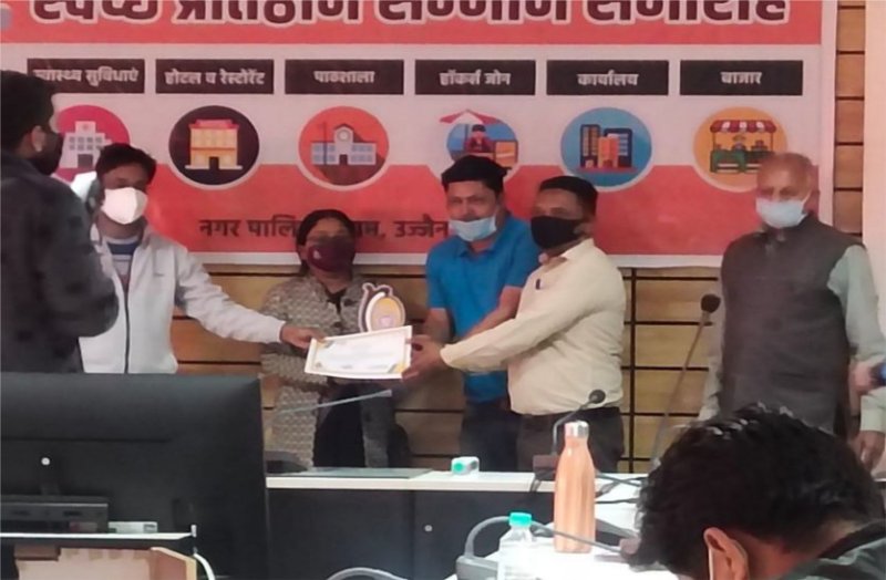 उज्जैन. स्वच्छ सर्वेक्षण-२०२२ अंतर्गत नागरिक सहभागिता घटक की रैकिंग में विशेष स्थान बनाने वाले प्रतिष्ठान, समिति आदि को सम्मानित किया गया है। शनिवार को स्मार्ट सिटी कार्यालय में नगर निगम द्वारा प्रमाण पत्र व ट्राफी देकर सम्मानित किया गया। साथ ही शहर में स्वच्छता का संदेश दिया गया।