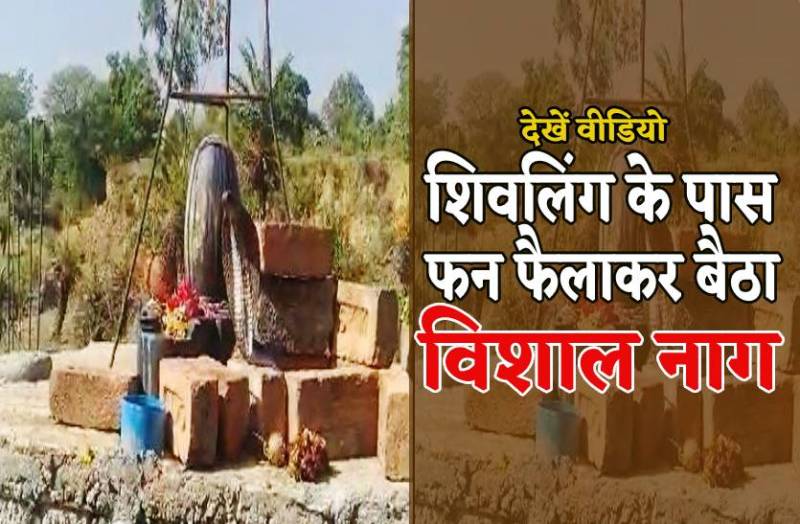 शिवलिंग के पास फन फैलाकर बैठा नाग
