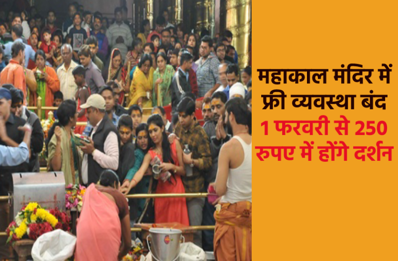 श्री महाकालेश्वर मंदिर में विभिन्न लोगों को प्रोटोकॉल के माध्यम से निशुल्क दर्शन कराए जाते हैं. इनके लिए कोटा भी निर्धारित है। अब प्रोटोकॉल के तहत दर्शन करने के लिए भी 250 रुपए का शुल्क चुकाना होगा। यह व्यवस्था 1 फरवरी से लागू हो जाएगी। प्रोटोकॉल में केवल अति विशिष्ट लोगों को ही निशुल्क दर्शन कराए जाएंगे। मंदिर प्रशासन ने 27 जनवरी को मंदिर प्रबंध समिति की बैठक में यह निर्णय ले लिया था।