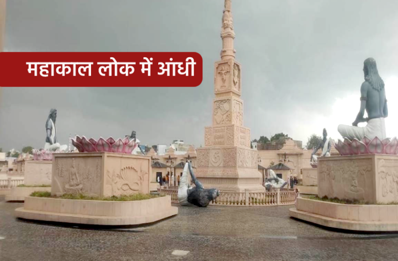 mahakal lok incident. रविवार को दोपहर में अचानक मौसम बिगड़ गया और तेज आंधी के साथ पूरे महाकोल लोक में अफरा-तफरी मच गई। इस दौरान कई प्रतिमाएं गिर गई और क्षतिग्रस्त हो गई। कई श्रद्धालु बाल-बाल बच गए। खबर मिलते ही जिला प्रशासन की टीम महाकाल लोक परिसर में पहुंच गई है। घटना शाम चार बजे की है।