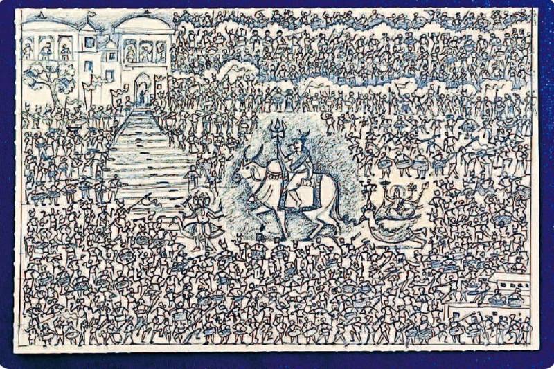 नितिन परिहार उज्जैन के निवासी हैं और वह बताते हैं कि हर श्रावण सोमवार को उज्जैन में बाबा महाकाल की सवारी निकलती है जिसमें से अंतिम सवारी जो कि शाही सवारी के रूप में जानी जाती है जिसे प्रेरणा लेकर नितिन ने अपनी रचनात्मकता कौशल का प्रयोग करके बाबा महाकाल की विशाल शाही सवारी को इतने छोटे से पोस्टकार्ड पर उकेर दिया।